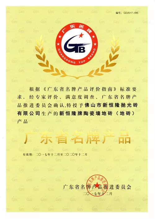 新恒隆陶瓷【廣東省名牌產品】正式授牌!