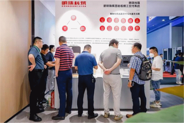 開展首日,新明珠集團(tuán)旗下品牌冠珠瓷磚攜“N+N綠建巖空間系統(tǒng)解決方案”驚艷亮相,廣東省住房和城鄉(xiāng)建設(shè)廳黨組成員、副廳長(zhǎng)楊清淦一行蒞臨展館參觀指導(dǎo),匠心的展館設(shè)計(jì)及創(chuàng)新的裝配式綠色產(chǎn)品吸引了眾多建筑界的同仁們前來(lái)參觀,建筑、室內(nèi)設(shè)計(jì)師對(duì)裝配式的巖板技術(shù)表示濃厚的興趣。
