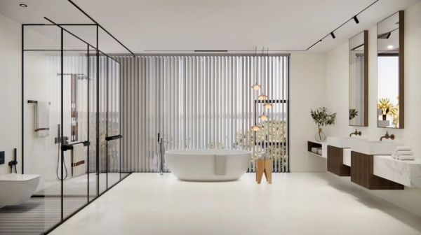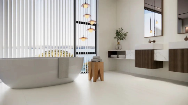浮光掠影細膩的自然質感,于光影交錯之際,讓如詩情懷融入夢幻流年,猶如治愈心扉的柔綿靈動之音,讓人愫語回轉;900×1800mm大規(guī)格的地面鋪貼,空間延展性更強,用戶也會感到很溫柔、很舒適。
