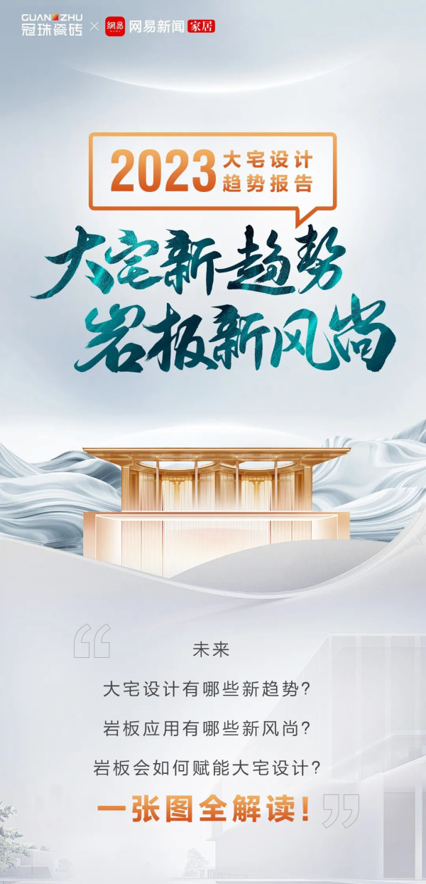 為更好展現(xiàn)中國大宅高端空間應(yīng)用的可能性,冠珠瓷磚在華珍系列上市之初,便聯(lián)合網(wǎng)易家居,發(fā)布《2023年大宅設(shè)計趨勢報告》,通過調(diào)研100位專業(yè)大宅設(shè)計師,解密大宅設(shè)計趨勢,與新材料空間多元化應(yīng)用,解碼設(shè)計師、高端業(yè)主對于大宅設(shè)計與應(yīng)用、裝飾選材的核心需求,為高端大宅提供系統(tǒng)化的家裝解決方案。
