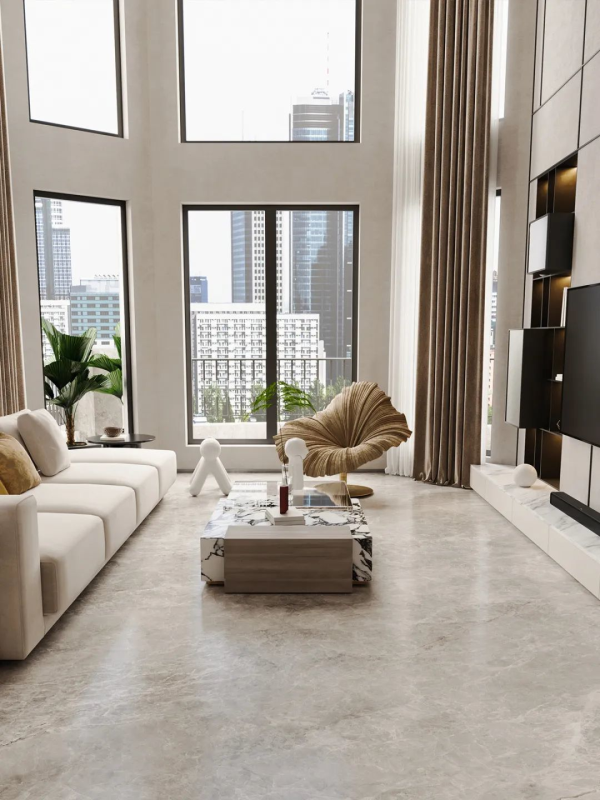 ▲冠珠華珍巖板大宅設(shè)計案例鑒賞——【客廳地面:滄浪灰】