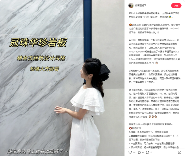 自冠珠華珍系列上市以來,其精準(zhǔn)適配大宅的高顏質(zhì)感特性,便成2023年“大宅巖板”、“豪宅巖板”熱議焦點(diǎn),收獲一眾設(shè)計師與家居博主口碑好評的同時,也讓家裝市場掀起一片高端大宅裝修新浪潮。