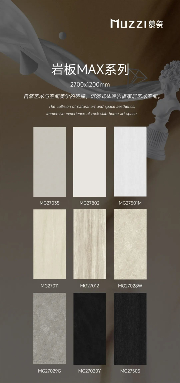 慕瓷精選的每一款巖板款式,都是大自然的藝術(shù)品,與意大利設(shè)計(jì)團(tuán)隊(duì)聯(lián)合開(kāi)發(fā),真實(shí)復(fù)刻天然紋理,2700x1200MM黃金比例規(guī)格,一片到頂更顯高更顯美觀,空間視覺(jué)感更強(qiáng),讓整體空間呈現(xiàn)出不同的高級(jí)感,展現(xiàn)自然藝術(shù)與空間美學(xué)的碰撞,是設(shè)計(jì)師和消費(fèi)者鐘愛(ài)的啞光磚巖板。歡迎全國(guó)各地客商蒞臨慕瓷總部參觀品鑒!