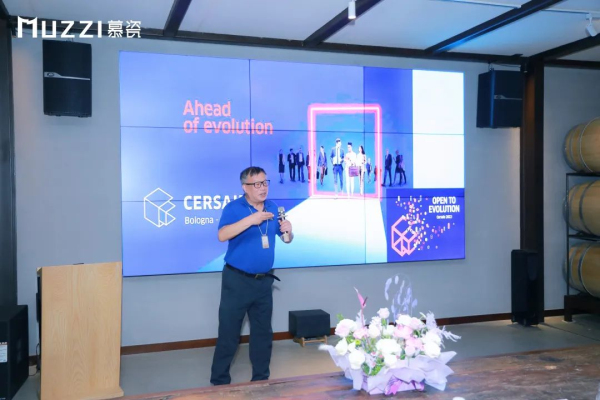The design team of MUZZI and Dr. Yin Hong, Secretary General of Foshan Ceramic Industry Association, went to Bologna, Italy to share the latest trend information of the exhibition with the guests at the private event.