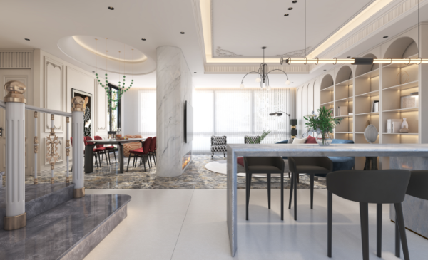 設(shè)計(jì)與生活時(shí)而成正比,時(shí)而構(gòu)成反差,在舒適自在的不變量下,二者關(guān)系微妙自如,隨時(shí)可以發(fā)生轉(zhuǎn)變,風(fēng)格、色彩更在寬泛的范圍內(nèi)融通。本案例整體設(shè)計(jì)融入奢石高定的美學(xué)內(nèi)涵,柔和純白調(diào)的清麗與金色調(diào)的富麗,以華美、精奢散發(fā)著奢石高定的藝術(shù)美感。歐若拉精工奢石在意式浪漫中加上高定精奢感,以符合當(dāng)代人的審美。