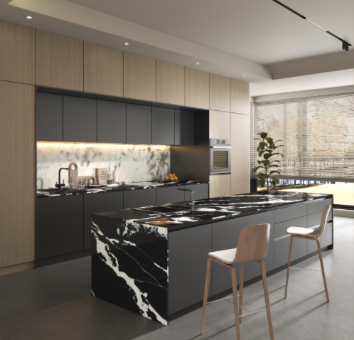 意式極簡廚房,看似簡潔素凈優(yōu)雅的生活態(tài)度,低調(diào)、舒適、卻無損高貴與雅致,法薩以優(yōu)質(zhì)的臺(tái)面勾勒出恰到好處的氣質(zhì),滿足儲(chǔ)物的功能需求下,理性不矯飾,將高級(jí)感呈現(xiàn)的淋漓盡致,優(yōu)雅而又內(nèi)斂,是意式輕奢風(fēng)的靈魂所在。
