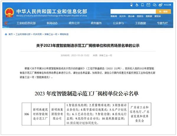 在公示中,新明珠數(shù)字化示范工廠重磅入選“2023年度智能制造示范工廠揭榜單位”。