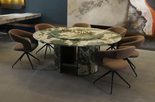 把“自然沉淀的力量”融入餐桌設(shè)計,在符合人體工程學(xué)舒適性的同時,為室內(nèi)空間增添了充滿品味的裝飾性,金屬與奢石紋理交相輝映,碰撞出專屬于高定家具的魅力。奢石餐桌內(nèi)嵌轉(zhuǎn)盤設(shè)計,滿足多人用餐。在功能與藝術(shù)的互動中,增強(qiáng)了空間的通透性和時尚感。注重生活里的小細(xì)節(jié),慢享三餐四季,閑觀歲月悠長。