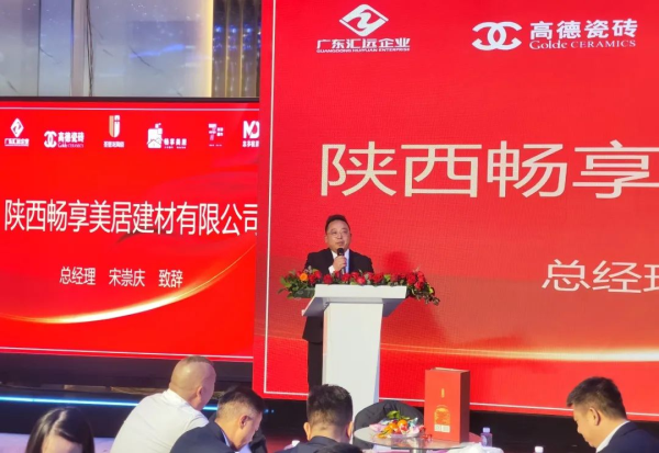 高德瓷磚戰(zhàn)略伙伴——暢享美居安董在致辭中表示,暢享美居經(jīng)過4年的探索、發(fā)展,已塑造出屬于自身的企業(yè)文化、打造出順應(yīng)行業(yè)趨勢(shì)的無憂服務(wù)模式、大商共贏模式,現(xiàn)在西北市場(chǎng)建立合作客戶1200家,且以每年超40%的銷售增長(zhǎng)率創(chuàng)造了發(fā)展奇跡!現(xiàn)依托高德瓷磚深厚的品牌底蘊(yùn)、卓越的產(chǎn)品品質(zhì)、出色的運(yùn)營(yíng)能力、靈活的市場(chǎng)策略,西北市場(chǎng)營(yíng)銷中心將全新打造創(chuàng)新、高效的新市場(chǎng)運(yùn)營(yíng)模式,推動(dòng)實(shí)施“運(yùn)營(yíng)前置、服務(wù)前置和倉(cāng)儲(chǔ)前置”的戰(zhàn)略,聚焦渠道拓展,服務(wù)品質(zhì),推進(jìn)團(tuán)隊(duì)服務(wù)流程標(biāo)準(zhǔn)化。