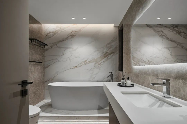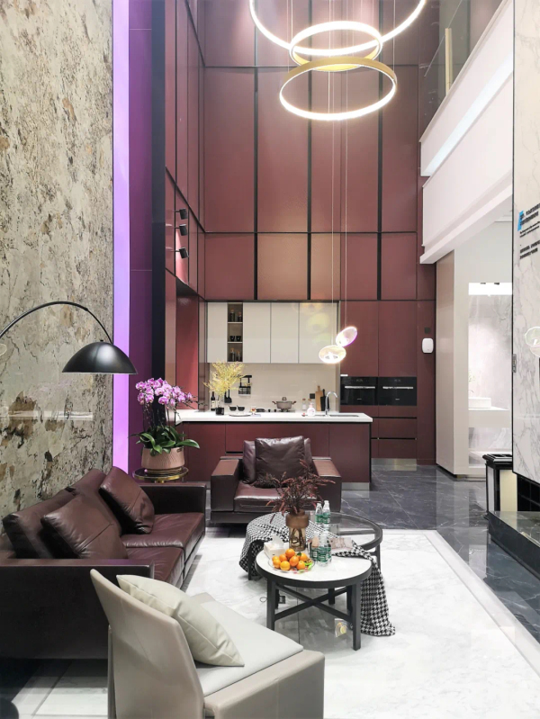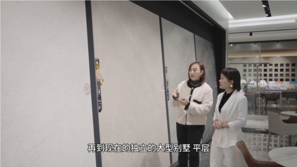 作為新明珠集團(tuán)旗下的主力品牌,薩米特較早就在大板巖板領(lǐng)域做出了布局,并且擁有完善的運(yùn)輸、加工、落地交付體系。賈蕓早在兩年前就曾用過(guò)薩米特的巖板,她說(shuō)當(dāng)時(shí)國(guó)內(nèi)大部分瓷磚門店都沒(méi)有大規(guī)格的產(chǎn)品,只有進(jìn)口巖板,而薩米特則已經(jīng)推出了800×2600mm、900×2700mm等大規(guī)格巖板,剛好適合用作業(yè)主的大宅背景墻。這讓她印象非常深刻。