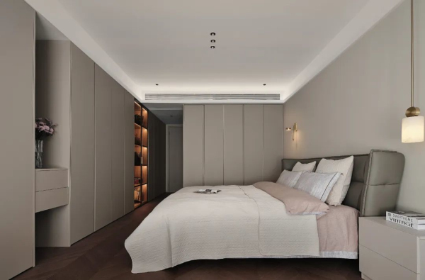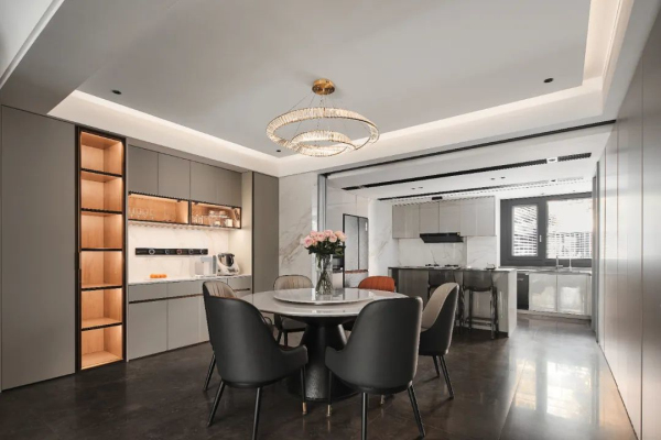 賈蕓在與業(yè)主接觸時(shí)發(fā)現(xiàn),她對(duì)材料品質(zhì)、功能布局、空間收納等方面都有一定的要求。因此,她深入細(xì)致地了解了業(yè)主的日常生活習(xí)慣,再根據(jù)房子的布局完善設(shè)計(jì)細(xì)節(jié),全力滿足業(yè)主的生活功能需求。