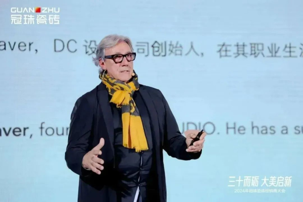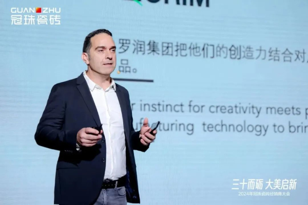 來自西班牙Digital Ceramic公司總裁Mr.Vicente Traver Sastre、產(chǎn)品設(shè)計營銷總監(jiān)Mr.Jorge Ania在現(xiàn)場向嘉賓們分享他們對于2024年《國際家裝設(shè)計及搭配趨勢》的見解,并展示了與冠珠瓷磚合作打造的系列新品。
