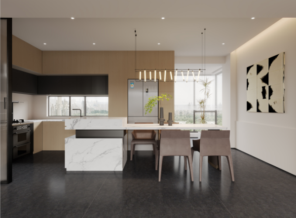 寬闊明亮的空間可以為我們帶來(lái)心靈上的釋放,開(kāi)放式的廚房,讓家的溫馨感更加濃厚,原木風(fēng)櫥柜與白色的奢石島臺(tái)組成最強(qiáng)CP,既顯沉穩(wěn)又顯高級(jí)操作分區(qū)明確,合理的動(dòng)線節(jié)省做家務(wù)的時(shí)間,賦予了廚房更多的可能性。
