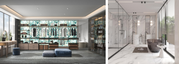 衣帽間采用透光奢石設(shè)計(jì),厚重與清透的感受相互融合,隱藏式燈帶與綠色奢石形成和諧互補(bǔ)。衛(wèi)生間色調(diào)搭配簡(jiǎn)約優(yōu)雅,精工奢石材質(zhì)為室內(nèi)增添了溫暖和深度,干濕分離則營(yíng)造出一種層次分明的感受,這些元素以一種靈動(dòng)而舒適的方式將空間連接起來(lái)。
