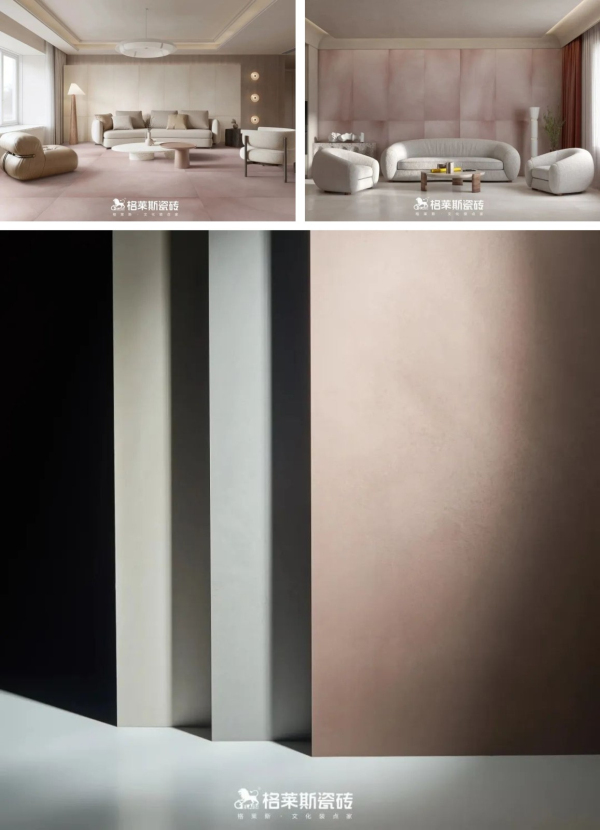 如詩如畫的莫蘭迪色調(diào),搭配香云紗織物縱橫肌理,微秒之間驚艷時(shí)光,不飽和色調(diào)隨性灑脫,營造舒緩雅致平衡觀感。香云紗特殊墨水技術(shù)+香云紗雅光釉技術(shù)+特殊釉料工藝,延續(xù)原生的觸感記憶,磚面自然細(xì)膩,光澤借助光的漫反射,呈現(xiàn)出不同角度的微閃視覺效果,營造空間感官視覺,賦予香云紗瓷磚年輕的氣質(zhì)與活力。