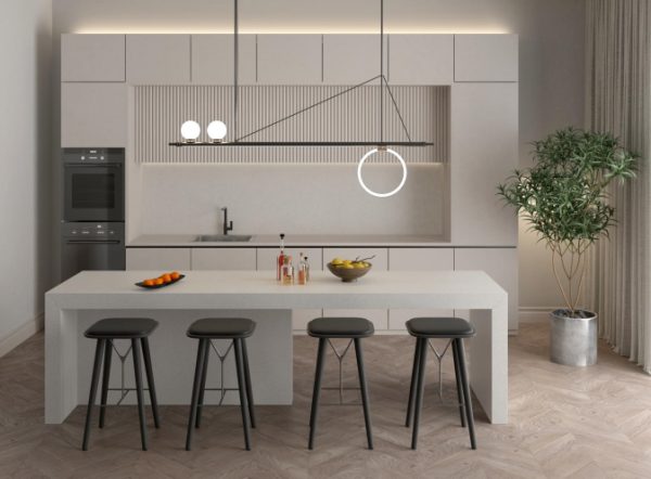 意式極簡風(fēng)格以簡潔、明快、純粹為特點(diǎn),不追趕潮流,一切從功能性和舒適度出發(fā),簡化材質(zhì)的表現(xiàn),達(dá)到視覺觀感上的絕妙統(tǒng)一,為廚房增加整個(gè)空間的質(zhì)感和層次感。法薩石以真實(shí)自然的清晰紋理,再加上穩(wěn)定出色的物理性能,打造高顏值的西廚空間。