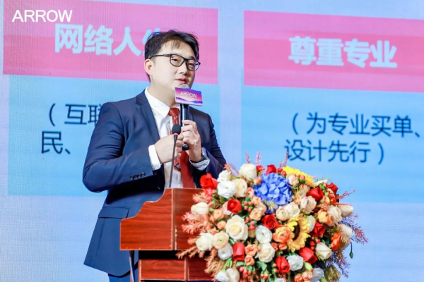 順應未來設計發(fā)展的趨勢,瓷磚事業(yè)部展示設計總監(jiān)吳琦向大家揭秘了箭牌瓷磚新展廳的SI發(fā)布標準。