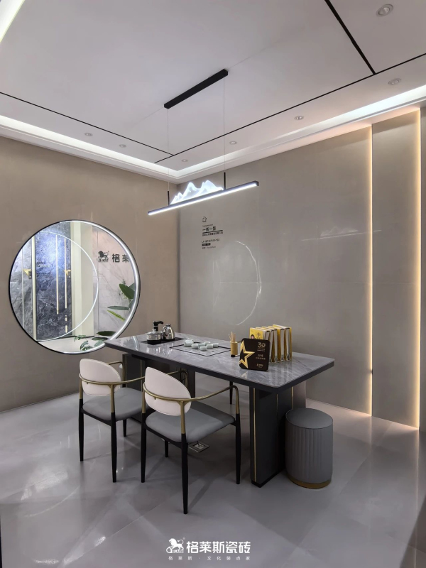 “香云紗瓷磚”是格萊斯獨創(chuàng)的跨界融合產(chǎn)品,通過非遺IP拉開品牌差異化,持續(xù)輸出品牌文化內(nèi)涵及價值,展示獨具東方質(zhì)感之美,為大眾提供國潮家居的搭配思路。茶室、書房的氣息與香云紗瓷磚給人靜謐寧靜的質(zhì)感極為契合,墻地鋪貼讓空間舒緩雅致,極簡的東方格調(diào)讓人沉醉于此。