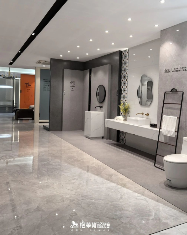 老市場已在當?shù)匕l(fā)展多年,一直以批發(fā)零售生意為主,大品牌較少進駐,水總果斷拿下600多平的店面進行升級打造。他深信在變化的競爭環(huán)境中,品牌形象是門店運營不變的核心關(guān)鍵,只要能讓品牌實力清晰展示,讓消費者肉眼可見,成交便是順勢而為的事。確實,當600多平格萊斯瓷磚門店揭幕亮相,便在當?shù)卣ㄩ_了鍋,周邊的同行都紛紛慕名前來打卡,水總更有趣地發(fā)現(xiàn),自從門店升級后,周邊的門店也陸陸續(xù)續(xù)地開始重裝的動作,老市場的品牌氛圍也越來越濃了。