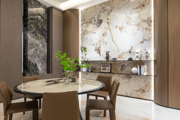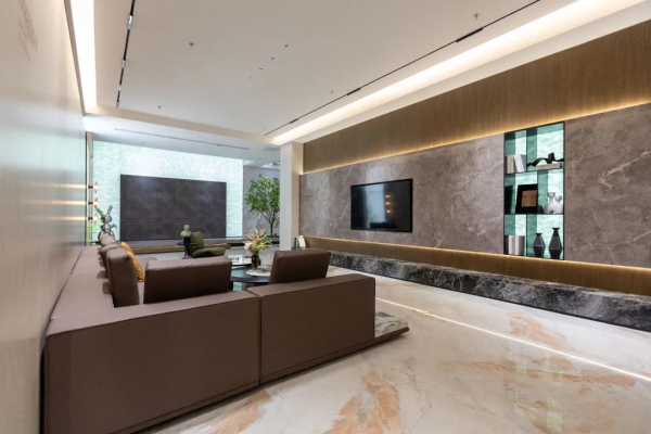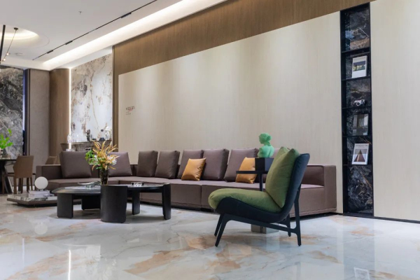 強(qiáng)輝大師館采用開放式設(shè)計(jì),各個(gè)展區(qū)之間相互連通,緊密聯(lián)系,建筑體塊與軟裝飾品創(chuàng)意交融,豐富的原石紋理給樣板上樣提供了多種可能。