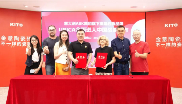 為滿足消費(fèi)者高階審美與家居應(yīng)用需求,金意陶深入洞察國際流行發(fā)展趨勢,組織調(diào)研國際市場,引進(jìn)意大利ABK集團(tuán)旗下高端巖板品牌UNICA,并就2024年合作達(dá)成深度共識。7月24日,金意陶集團(tuán)與ABK集團(tuán)簽約合作儀式在金意陶佛山總部順利舉行,金意陶集團(tuán)副總經(jīng)理兼瓷磚事業(yè)部總經(jīng)理侯波與意大利ABK集團(tuán)亞太區(qū)域總監(jiān)Alessia Zerbini簽署戰(zhàn)略合作協(xié)議,雙方戰(zhàn)略合作關(guān)系正式達(dá)成。