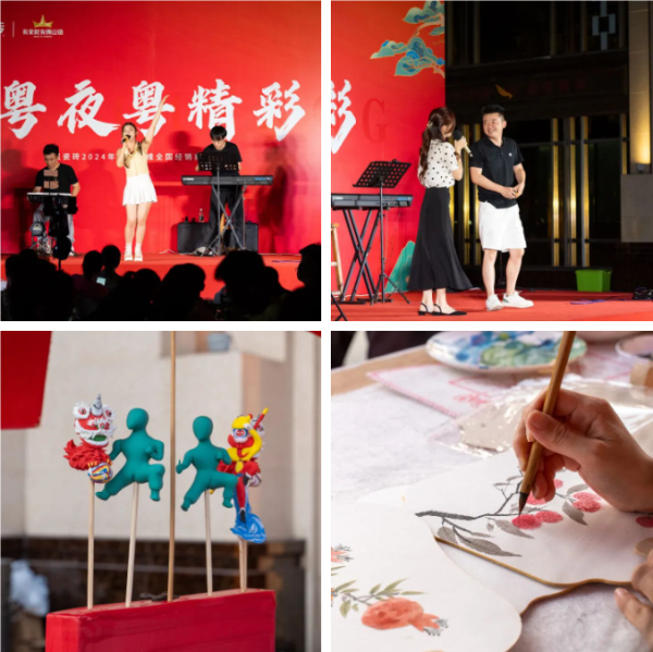 《粵夜粵精彩》歡迎夜宴在樂隊(duì)的激情演奏中拉開序幕。夜宴不僅準(zhǔn)備了豐盛的自助餐和燒烤類美食,還安排了豐富的粵文化互動(dòng)環(huán)節(jié),來自全國(guó)各地的宗師們紛紛參與手工制作功夫公仔和手繪國(guó)潮扇畫,體驗(yàn)粵文化的獨(dú)特魅力。