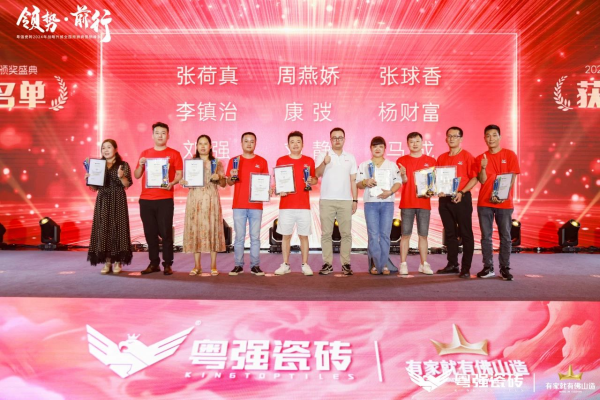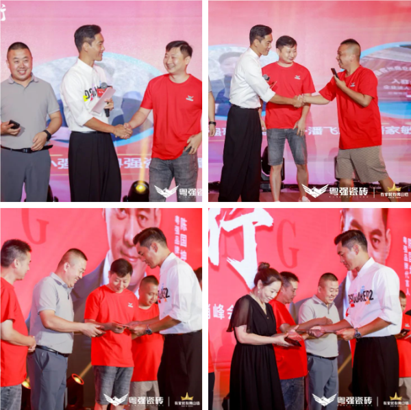 為感謝粵強(qiáng)全國(guó)瓷磚一代宗師們對(duì)粵強(qiáng)扎根市場(chǎng)和發(fā)展壯大作出的杰出貢獻(xiàn),晚宴更設(shè)置頒獎(jiǎng)環(huán)節(jié),分別為宗師們頒發(fā)“鉆石服務(wù)商獎(jiǎng)”、“新媒體卓越成就獎(jiǎng)”、“優(yōu)秀工程服務(wù)商獎(jiǎng)”、“杰出經(jīng)銷商獎(jiǎng)”、“優(yōu)秀店面獎(jiǎng)”、“飛躍進(jìn)步獎(jiǎng)”等獎(jiǎng)項(xiàng)。