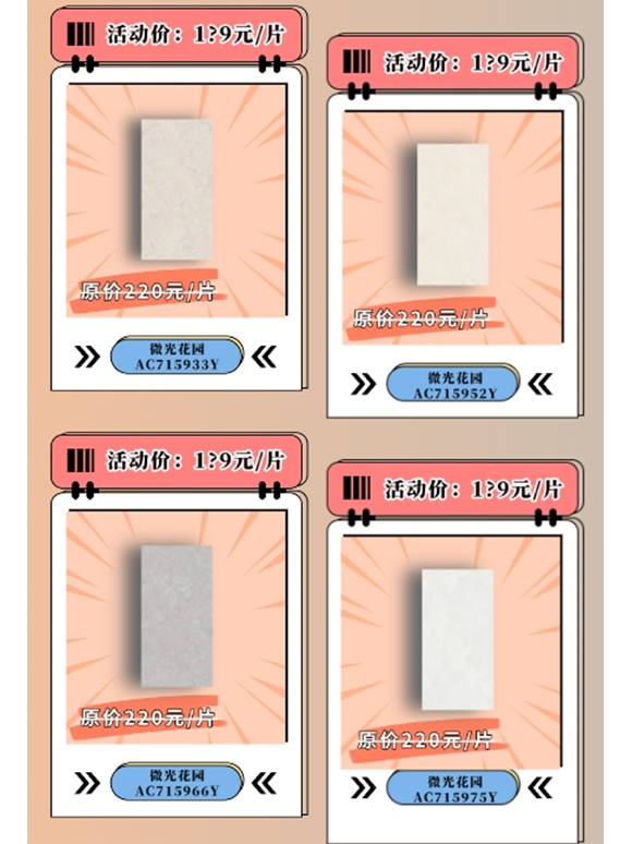 活動期間,箭牌瓷磚超值爆款產(chǎn)品,限量供應(yīng),搶完即止。