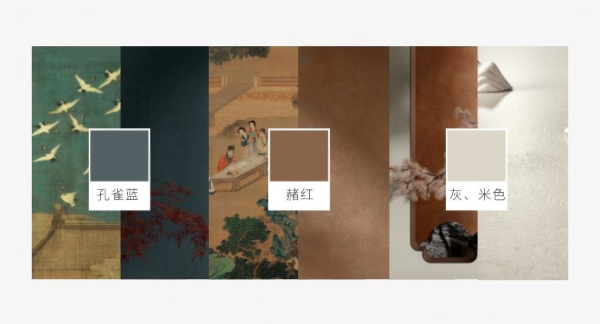 色彩密碼:系列特別提煉出內(nèi)斂溫和中性色為主色調(diào),以極具宋代特色的孔雀藍(lán)、赭紅色作為配色,點(diǎn)綴于中性色之間,為現(xiàn)代空間注入一抹沉靜而不失格調(diào)的詩意。
