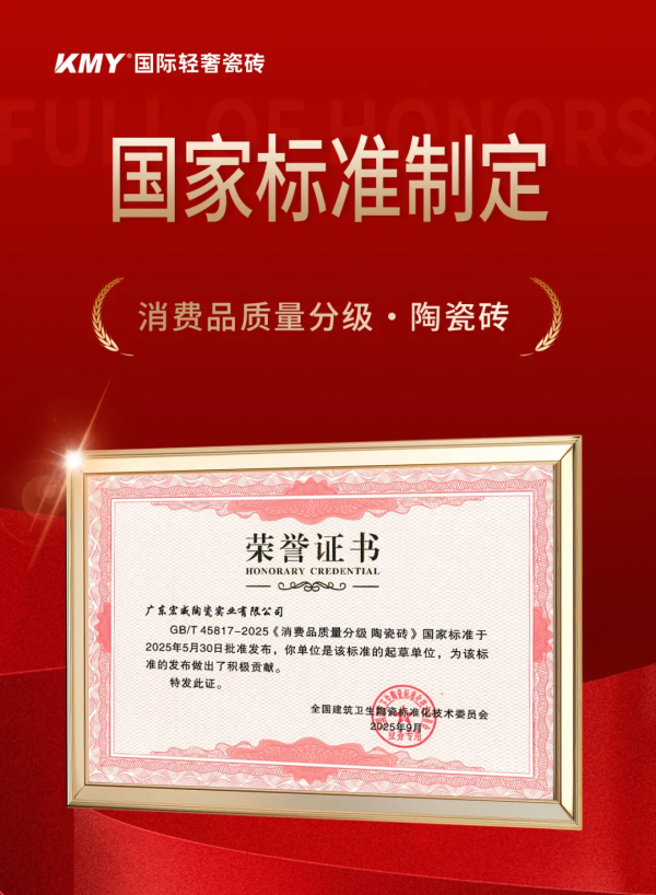 在消費升級與產(chǎn)業(yè)轉(zhuǎn)型的雙重驅(qū)動下,陶瓷行業(yè)正邁入標(biāo)準(zhǔn)化、分級化與高端化協(xié)同發(fā)展的新階段。根據(jù)國家標(biāo)準(zhǔn)化管理委員會公告,自2025年12月1日起,GB/T 45817-2025《消費品質(zhì)量分級 陶瓷磚》國家標(biāo)準(zhǔn)將正式實施。