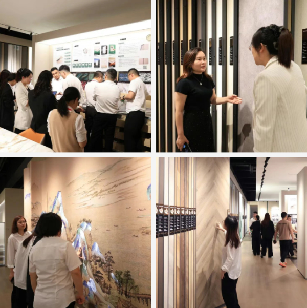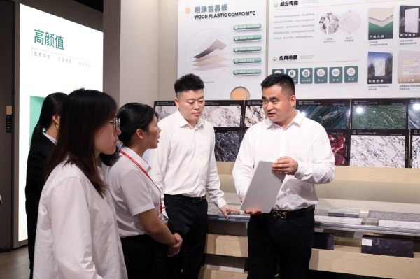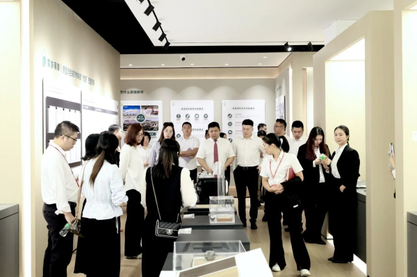 在展廳參觀環(huán)節(jié),多場(chǎng)景實(shí)景展示生動(dòng)呈現(xiàn)了綠建新材的創(chuàng)新應(yīng)用。與會(huì)人員通過(guò)沉浸式體驗(yàn),深入了解了產(chǎn)品特性與應(yīng)用價(jià)值,對(duì)產(chǎn)品卓越的功能性、環(huán)保性與美學(xué)價(jià)值給予高度認(rèn)可。這一環(huán)節(jié)既強(qiáng)化了團(tuán)隊(duì)對(duì)新明珠綠材產(chǎn)品體系的專(zhuān)業(yè)認(rèn)知,也為市場(chǎng)推廣提供了直觀有力的展示范本。