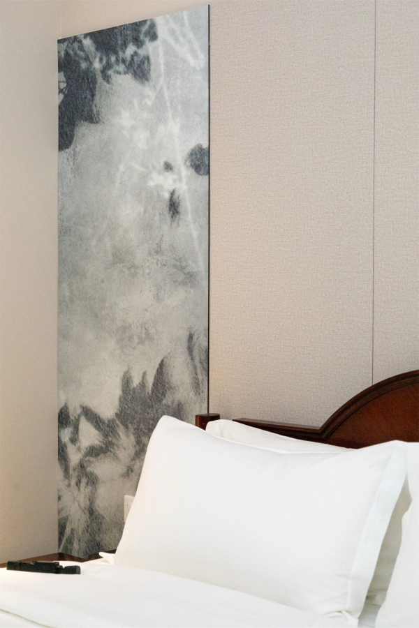 走廊視覺上,墻板無縫一體的拼接效果,賦予空間極強的整體感和延伸感,讓空間顯得更開闊。易于清潔和維護的特性,也極大減輕了酒店的后期運營負擔。