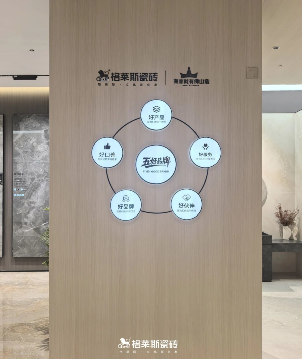 格萊斯瓷磚總部以“傳承經(jīng)典文化”為內(nèi)核,通過場景化設(shè)計(jì)與“五好品牌”的融合展示,將傳統(tǒng)文化的厚重與現(xiàn)代質(zhì)感的追求無縫銜接,實(shí)現(xiàn)美學(xué)表達(dá)的融會(huì)貫通。