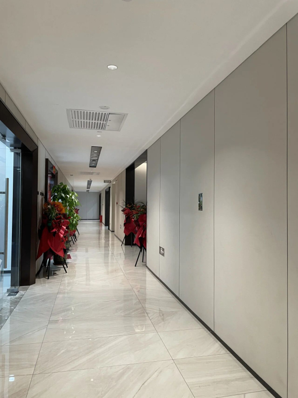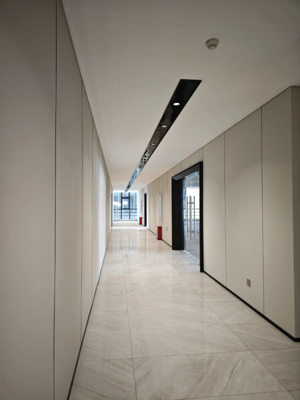 SPC石晶墻板采用的白色布紋設(shè)計(jì),以極簡(jiǎn)美學(xué)演繹現(xiàn)代商務(wù)空間的質(zhì)感與格調(diào)。純凈的白色基調(diào)搭配細(xì)膩的布紋肌理,為樓層通道空間注入明亮而溫馨的氛圍,既保持了商業(yè)空間應(yīng)有的專業(yè)感,又打破了傳統(tǒng)辦公空間的冰冷與單調(diào)。