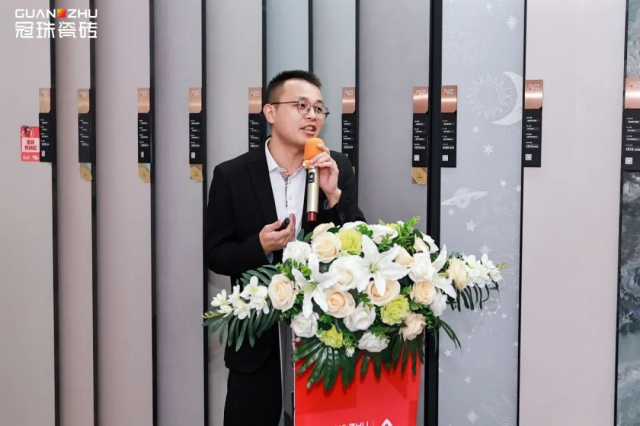 冠珠瓷磚區(qū)域代表黃強(qiáng)向大家介紹冠珠瓷磚的品牌實(shí)力與產(chǎn)品創(chuàng)新,通過對(duì)冠珠瓷磚產(chǎn)品材質(zhì)紋理、物理性能及應(yīng)用場(chǎng)景的詳細(xì)解讀,向設(shè)計(jì)嘉賓們展示了冠珠瓷磚在高端人居空間中的全案交付能力。
