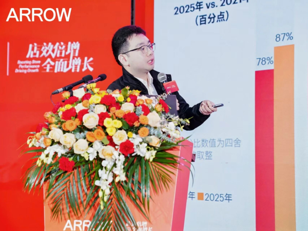 圍繞終端門店的變革趨勢與進(jìn)化方向,箭牌瓷磚事業(yè)部展廳設(shè)計總監(jiān)吳琦進(jìn)行了專題分享。他指出,終端門店正經(jīng)歷從產(chǎn)品陳列向場景體驗的轉(zhuǎn)型升級,并介紹了全新的A6 pro標(biāo)準(zhǔn)門店模型,強(qiáng)調(diào)將通過空間設(shè)計、場景營造與店態(tài)升級,系統(tǒng)提升終端形象與體驗價值,助力經(jīng)銷商以“空間美學(xué)”驅(qū)動銷售轉(zhuǎn)化。