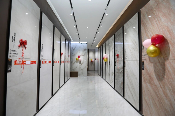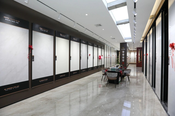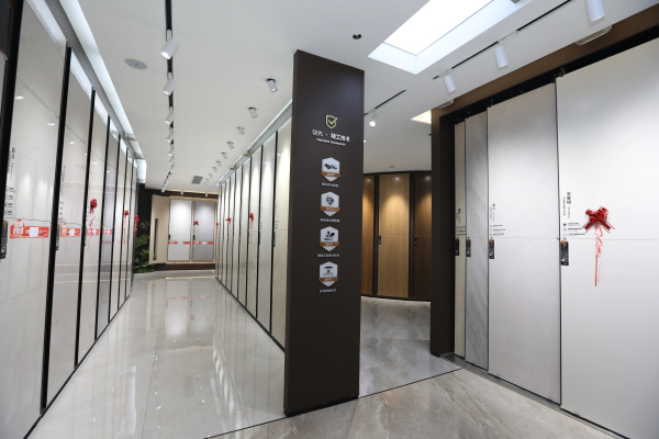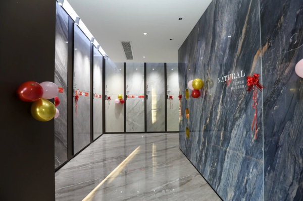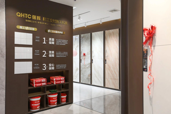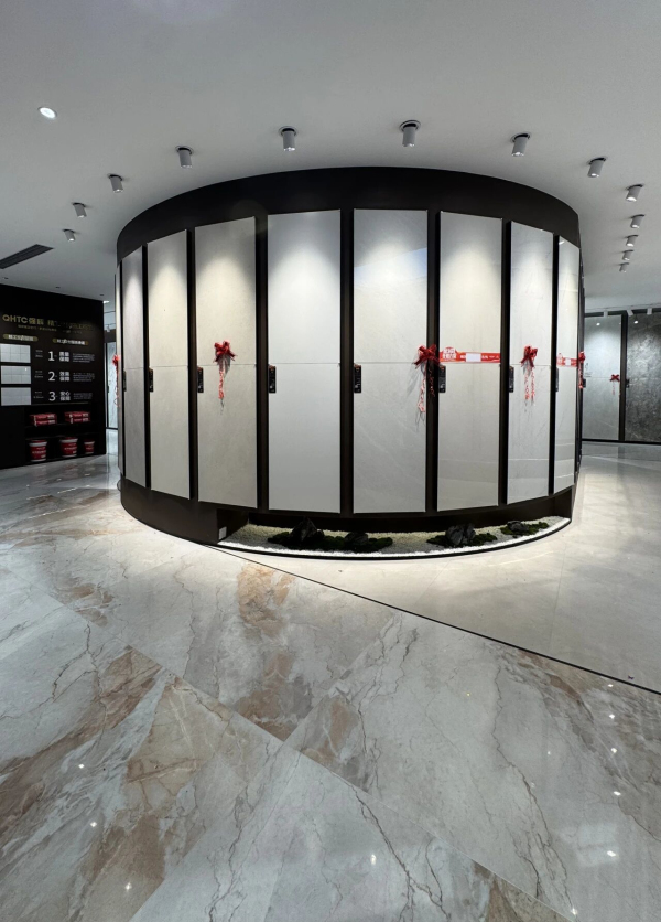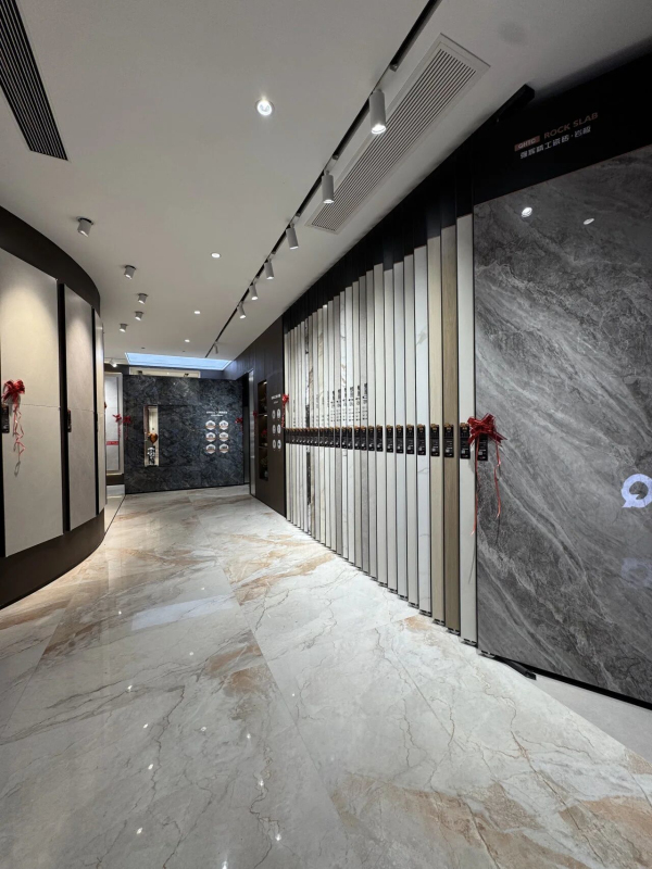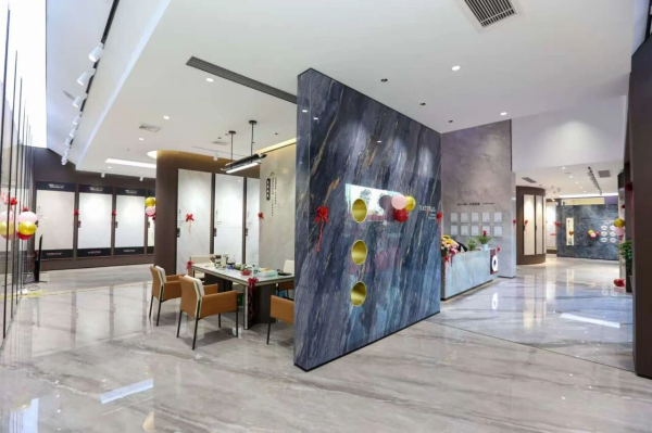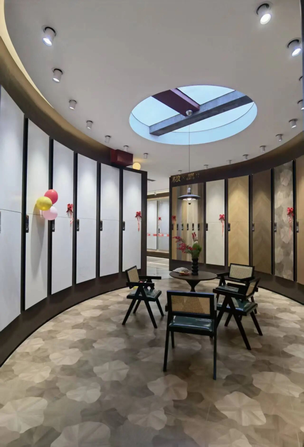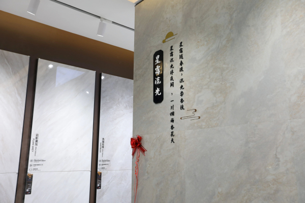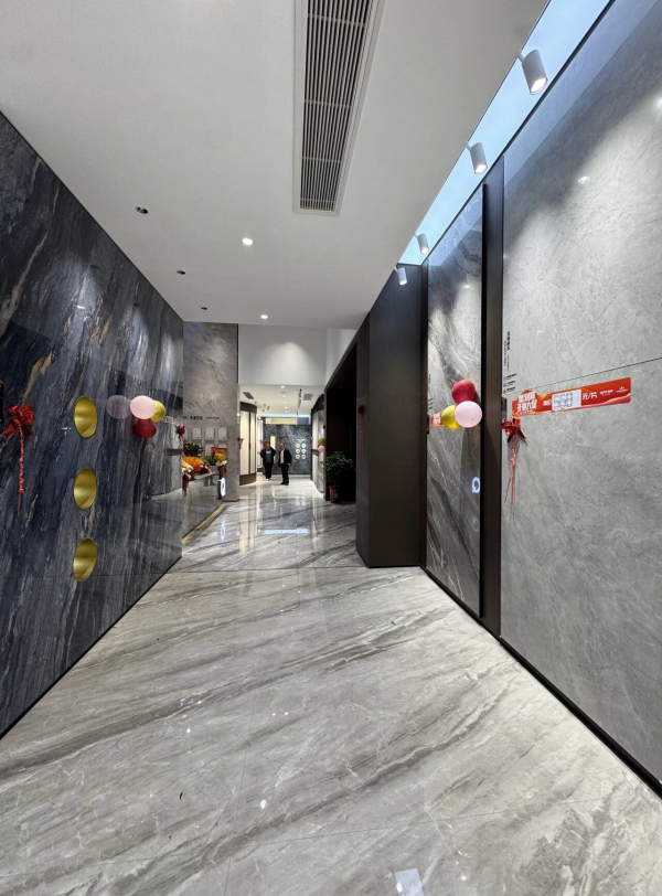 踏入空間,簡約大氣的巖板背景墻與自然肌理交織成詩,金屬LOGO成為點睛之筆,在柔光中熠熠生輝。