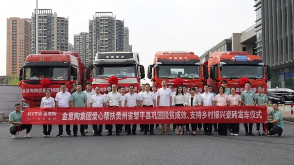 2023年8月,金意陶向地處貴州省的黎平縣捐助價(jià)值180萬元的建設(shè)用磚。