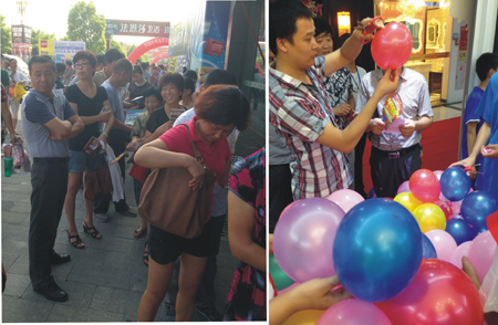 8月18日,泰興法恩莎瓷磚衛(wèi)浴盛大開業(yè)。此次重裝開業(yè)使用大量新品元素,極大提升了展廳展示效果。8月18日凌晨4點(diǎn)早早地就有人拿著貴賓卡開始排隊(duì)等候在紅星美凱龍店門口,等待法恩莎瓷磚店面的開市。大約8點(diǎn)左右,陽光開始明媚,紅星美凱龍正式開門,接著大群的人群不斷的涌入法恩莎門店,所有導(dǎo)購應(yīng)接不暇,成為一當(dāng)天紅星美凱龍最具人氣的門店。上午9點(diǎn)整,法恩莎瓷磚總部事業(yè)部總經(jīng)理鄧平峰先生親臨正式簽售,凡是鄧總簽售后均可獲贈(zèng)現(xiàn)金紅包及現(xiàn)場所有開業(yè)鉅惠。11點(diǎn)正式開始抽獎(jiǎng),凡是下單每滿2000元即可挑選氣球一枚,扎破就有機(jī)會(huì)獲得品牌冰箱、電視、洗衣機(jī)。所有在法恩莎購買產(chǎn)品的客戶不但可以參與門店抽獎(jiǎng)活動(dòng),還可以參與紅星美凱龍空調(diào)的抽獎(jiǎng)活動(dòng),雙抽獎(jiǎng)活動(dòng)吸引了眾多消費(fèi)者,從門店?duì)I業(yè)到晚上7點(diǎn)市場關(guān)門,一直是絡(luò)繹不絕的人群進(jìn)來”