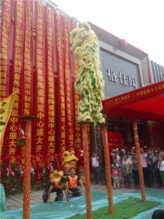 當(dāng)天, 江蘇吳江格仕陶旗艦店舉行了隆重的開業(yè)慶典,并邀請了享譽海內(nèi)外的世界獅王——佛山“黃飛鴻”舞獅隊現(xiàn)場助興。獅王颯爽的英姿,龍精虎猛的氣勢,贏得了滿堂喝彩,也預(yù)示著格仕陶奮勇進(jìn)取的精神?偛煤炇,“砸金蛋”等促銷活動,讓現(xiàn)場更加火爆,引發(fā)了銷售狂潮,取得超出預(yù)期目標(biāo)的銷售業(yè)績,讓開業(yè)盛典取得圓滿成功!
