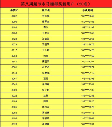 2013年恒潔衛(wèi)浴“節(jié)水大使”網(wǎng)絡征集活動最后一期幸運中獎者名單