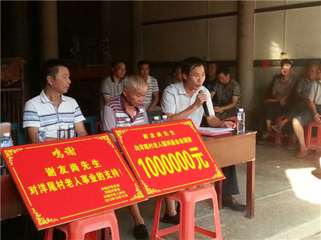 尚豪集團總裁謝友尚向楊尾村福利基金會捐資100萬元