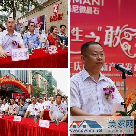 屆時,中國建筑裝飾協(xié)會材料委員會秘書長王岳飛、中國建筑裝飾協(xié)會材料委員會外聯(lián)部主任梁宏瑀、佛山陶瓷行業(yè)協(xié)會秘書長于楓以及建筑時報佛山通聯(lián)站主任、陶瓷網(wǎng)總監(jiān)金亞范作為特約嘉賓,與佛山歐瑪尼陶瓷有限公司董事兼總經(jīng)理楊文超等三大品牌(包括歐瑪尼陶瓷、歐瑪仕微晶石、歐奈兒微晶石)各級領導、全國各地一百多名經(jīng)銷商代表以及數(shù)十家行業(yè)資深媒體記者一同出席本次盛典,共同見證了歐瑪尼陶瓷旗下V8、A8、R8三大系列高規(guī)格新品上市。