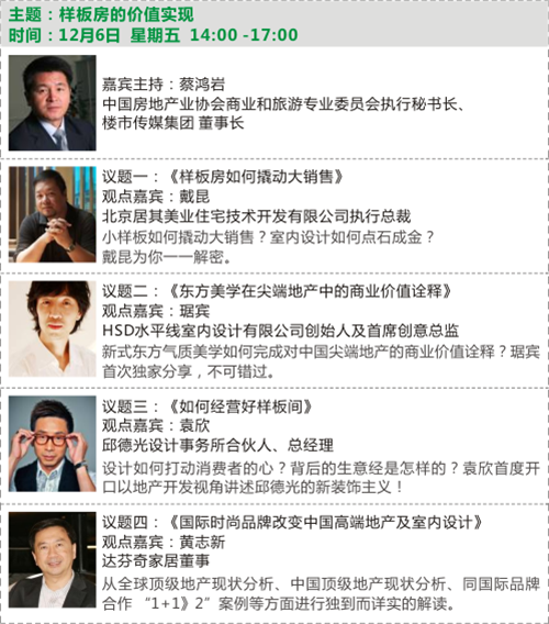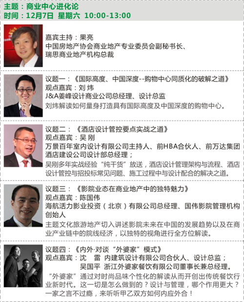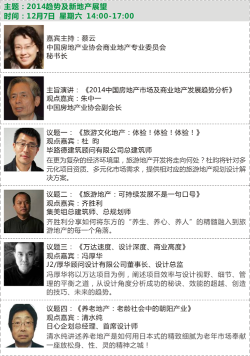 2013年12月6-8日,由中國(guó)房地產(chǎn)業(yè)協(xié)會(huì)商業(yè)和旅游地產(chǎn)委員會(huì)與廣州國(guó)際設(shè)計(jì)周聯(lián)合主辦的“2013中國(guó)商業(yè)和旅游地產(chǎn)設(shè)計(jì)年會(huì)”將通過(guò)樣板房、商業(yè)空間、2014趨勢(shì)展望和旅游文化地產(chǎn)三個(gè)板塊展開(kāi)討論,眾多業(yè)內(nèi)耳熟能詳?shù)臉?biāo)桿性項(xiàng)目背后的設(shè)計(jì)師走向臺(tái)前,解密項(xiàng)目開(kāi)發(fā)的秘訣與趨勢(shì)。