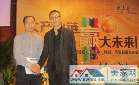 正大陶瓷營(yíng)銷(xiāo)總經(jīng)理朱寶林與美家網(wǎng)CEO王建