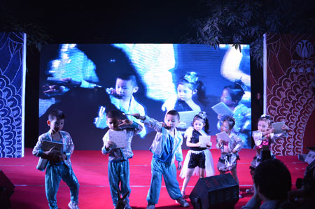 活潑可愛的小朋友們展示孔雀瓷磚產(chǎn)品