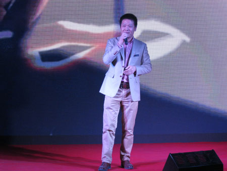 孔雀瓷磚總經(jīng)理陳曉龍于晚會現(xiàn)場發(fā)言
