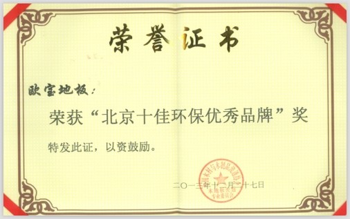 在剛剛過去的2013年末,歐寶地板在2013北京地板高峰論壇暨北京優(yōu)秀品牌頒獎(jiǎng)典禮上榮獲北京十佳環(huán)保優(yōu)秀品牌獎(jiǎng)。這次同臺(tái)領(lǐng)獎(jiǎng)的企業(yè)有圣象、歐寶、生活家、安信及大自然等等企業(yè),紅星美凱龍、集美等家居商場(chǎng)負(fù)責(zé)人及媒體記者300余人參加此次盛會(huì)。