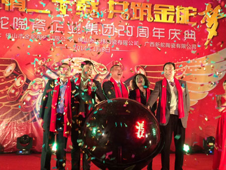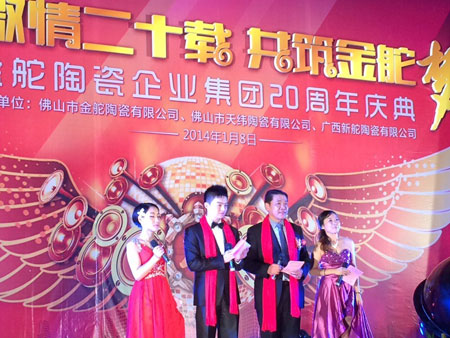 2014年1月8日,【激情二十載,共筑金舵夢】金舵陶瓷企業(yè)20周年慶典在佛山舉行,金舵陶瓷企業(yè)領(lǐng)導(dǎo)與全體員工,以及來自全國各地的經(jīng)銷商代表、供應(yīng)商代表和媒體朋友等700人齊聚一堂,共同見證這一喜慶時刻。