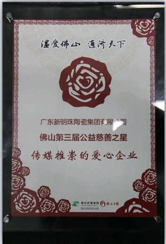 新明珠陶瓷集團(tuán)喜獲2014年傳媒推崇的愛心企業(yè)稱號(hào)